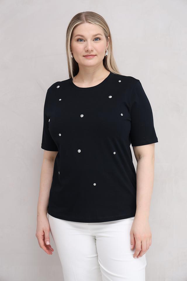 Чёрная футболка Gerry Weber с деликатной отделкой из жемчуга. Изготовлена из 100% хлопка, обеспечивая комфорт и воздухопроницаемость. Стильный и элегантный вариант для повседневного образа. Состав: хлопок 100%