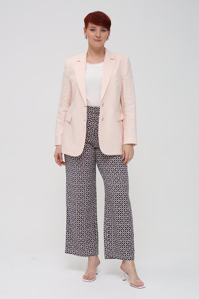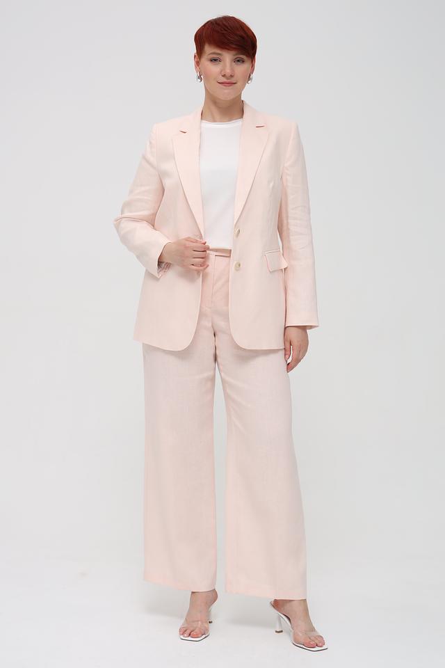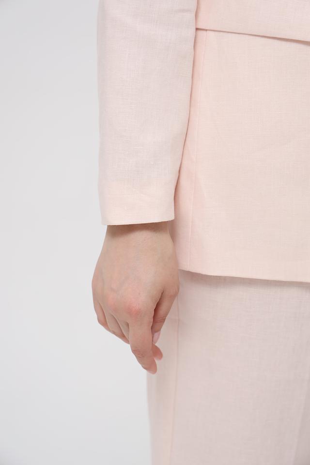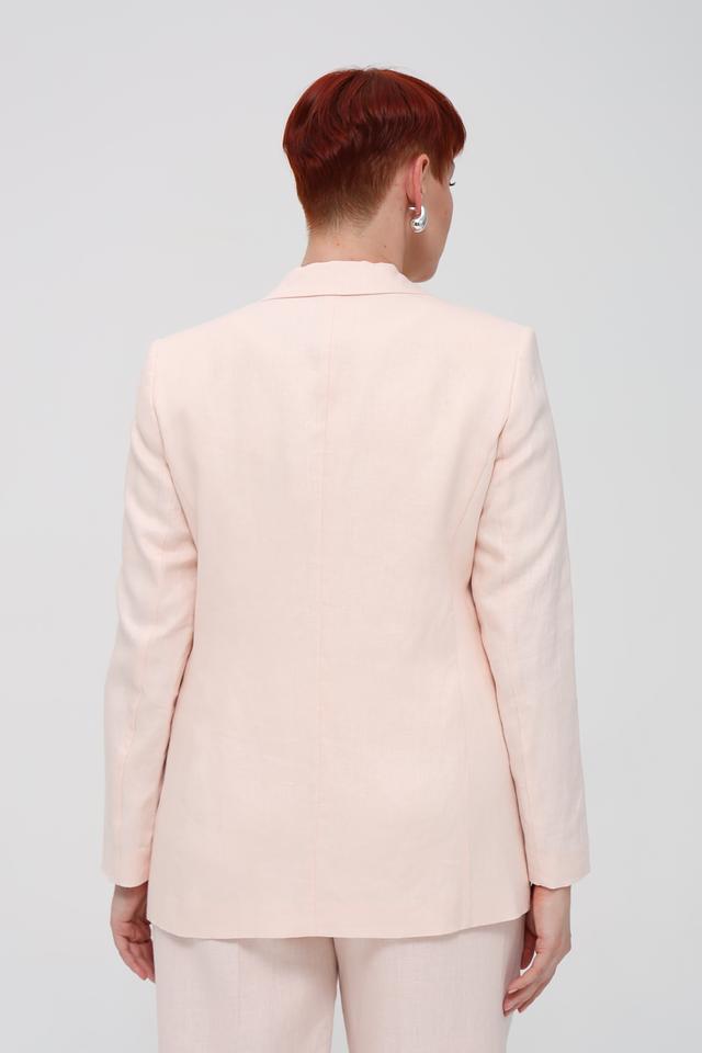 Жакет изготовлен из 100% льна, что обеспечивает комфорт в жаркую погоду и приятные тактильные ощущения. Лен – натуральный и экологичный материал, который отлично пропускает воздух и позволяет коже дышать. Этот жакет станет вашим любимым выбором для создания элегантных и комфортных образов.