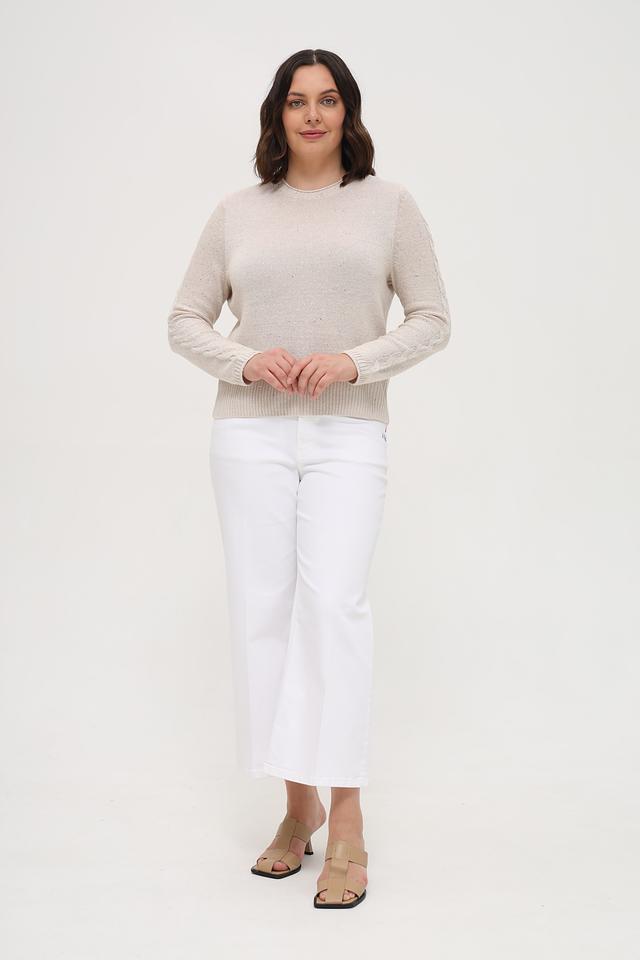 Бежевый пуловер Gerry Weber с деликатным мерцанием блесток станет отличным дополнением к вашему гардеробу. Изготовлен из мягкого и приятного к телу сочетания льна и вискозы. Состав: лен 62%, вискоза 30%, полиэстер 5%, метализ.полиэстер 2%, полиамид 1%