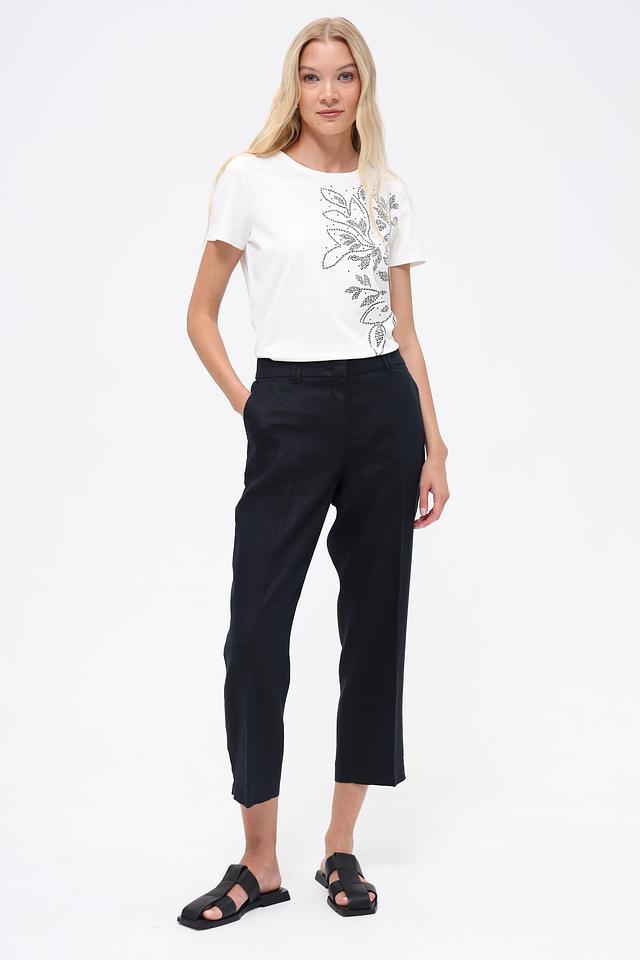 Классический черный цвет делает эти брюки универсальным элементом гардероба, который легко сочетается с различными топами, блузками и обувью. Брюки подойдут для создания как повседневных, так и более элегантных образов. Состав: 100% лен.