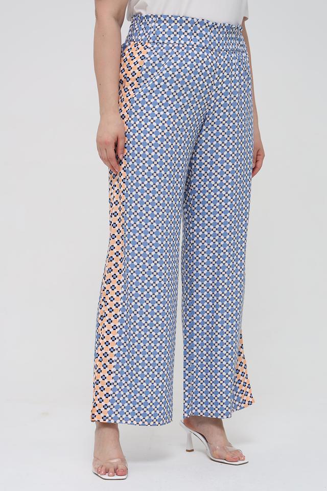 Эти стильные брюки от Gerry Weber EDITION станут прекрасным дополнением к вашему гардеробу. Брюки выполнены в приятной голубой цветовой гамме и украшены ярким геометрическим принтом, сочетающим в себе оттенки голубого и персикового.