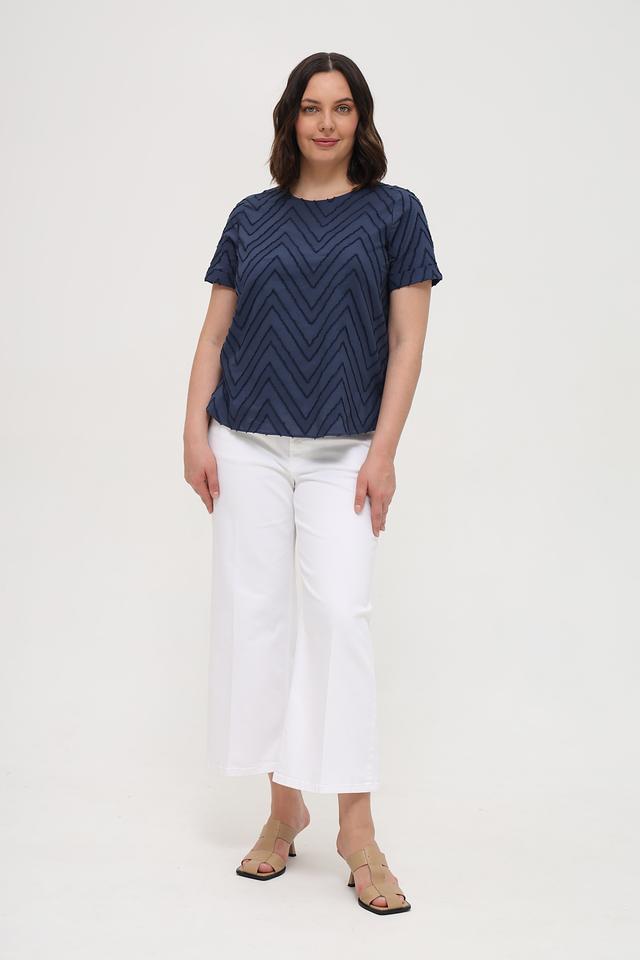 Синяя блуза Gerry Weber EDITION из 100% хлопка с оригинальным зигзагообразным узором. Модель с короткими рукавами и округлым вырезом горловины станет стильным дополнением к вашему гардеробу. Состав: хлопок 100%