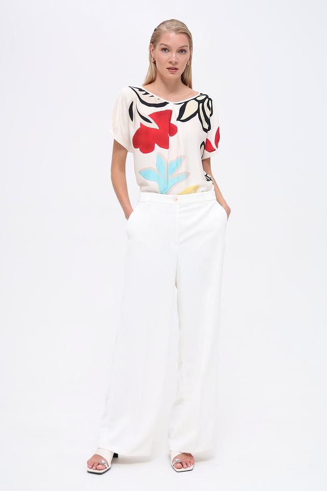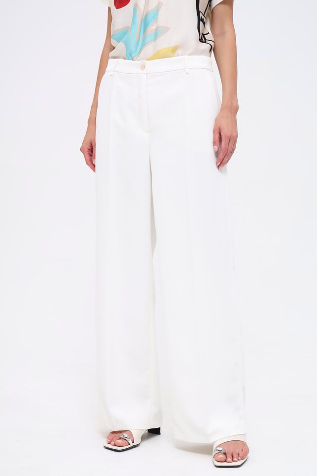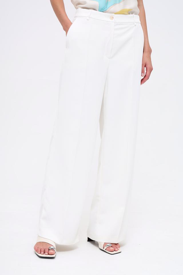 Брюки выполнены в белом цвете, что делает их универсальными и подходящими для создания различных образов. Они легко сочетаются с блузками, топами и жакетами.