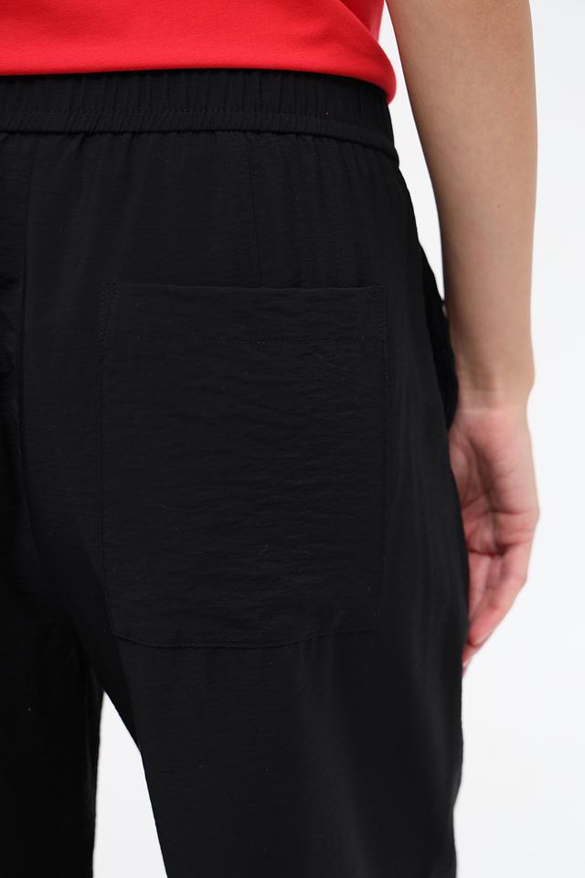 Брюки имеют прямой крой, который визуально удлиняет ноги и создает стройный силуэт. Эластичный пояс обеспечивает комфортную посадку и свободу движений. Модель дополнена боковыми карманами.