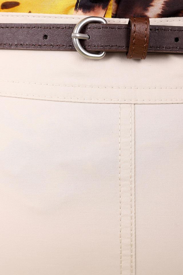 Юбка имеет классический крой, который подчеркивает фигуру и создает элегантный силуэт. Пояс в тон юбки визуально сужает талию и добавляет образу завершенности. Изготовлена из высококачественного хлопка с добавлением эластана, что обеспечивает комфорт при носке и сохранение формы.