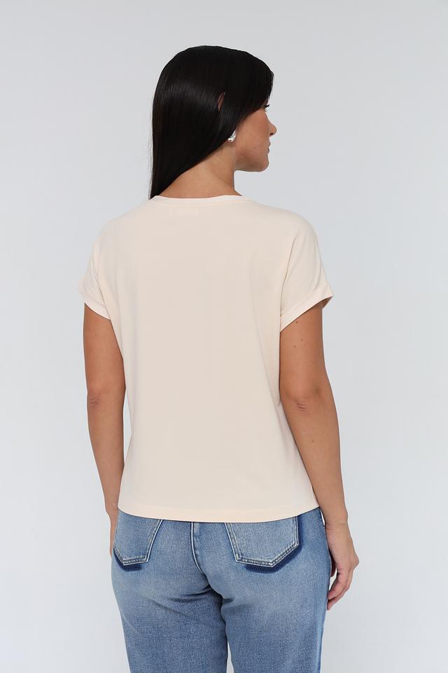 Бежевая футболка Gerry Weber EDITION из мягкого трикотажа с округлым вырезом и короткими рукавами. Модель отличается лаконичным дизайном и удобным кроем, идеально подходит для повседневной носки. Состав: хлопок 47%, модал 47%, эластан 6%