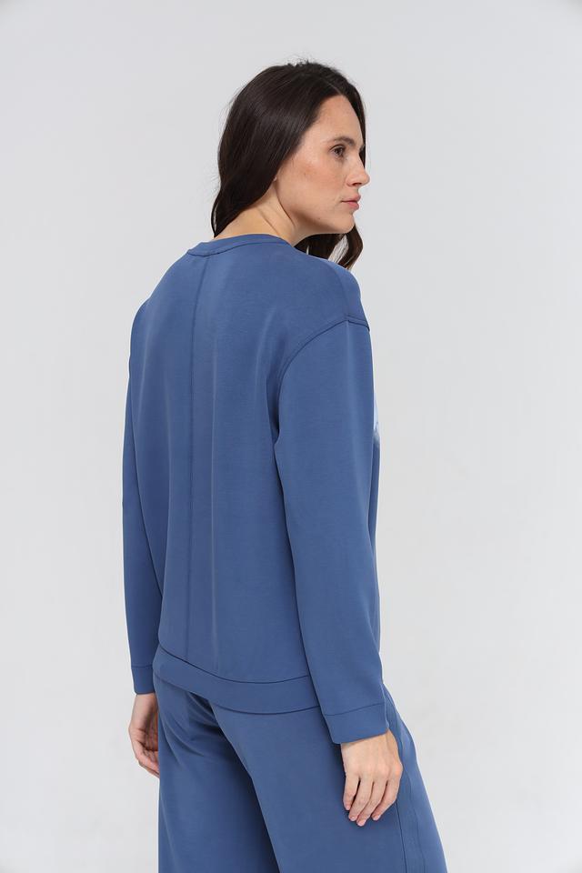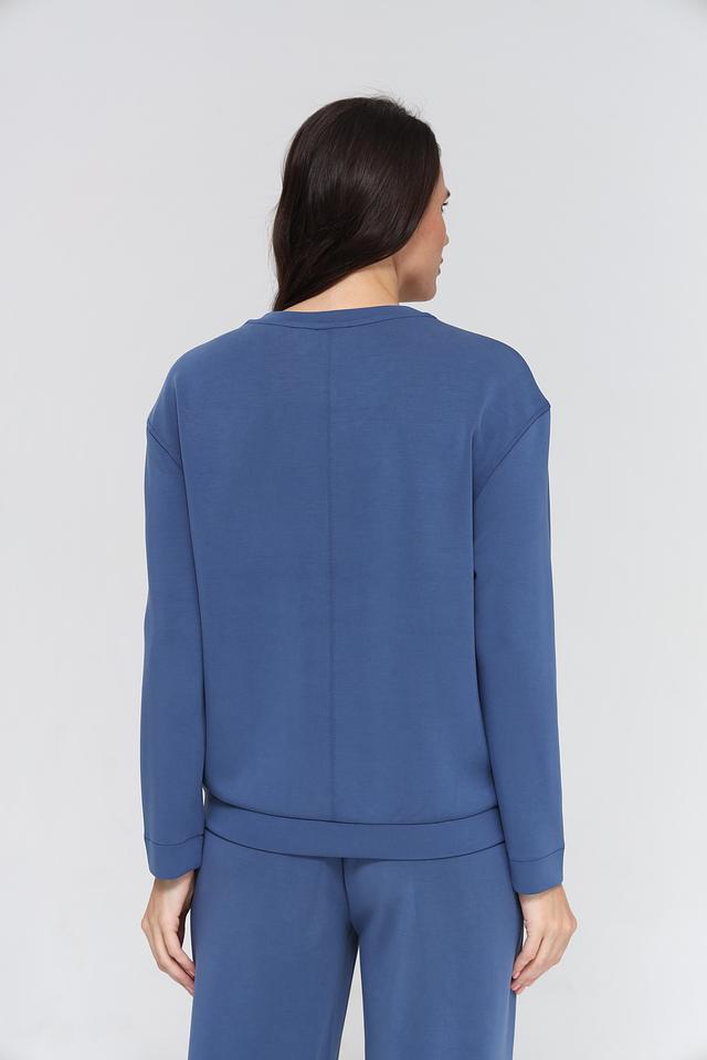 Пуловер имеет свободный крой, который не сковывает движений и обеспечивает комфорт в течение всего дня. Сочетание модала, полиэстера и эластана в составе ткани гарантирует мягкость, износостойкость и хорошую посадку по фигуре.