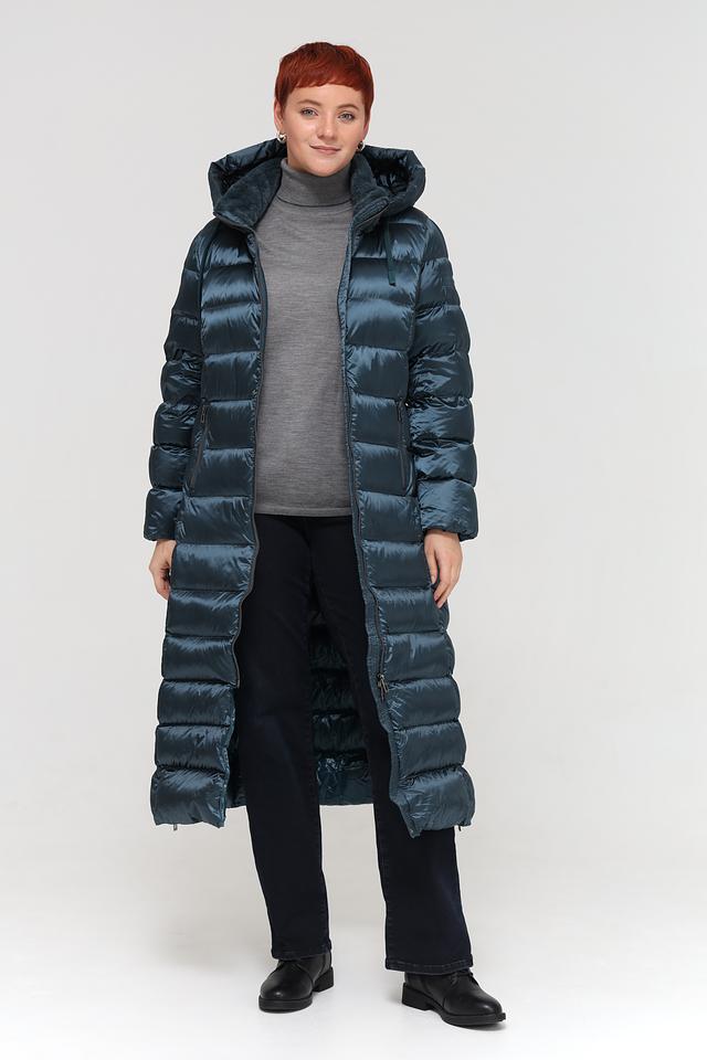 Пальто имеет длину макси, что обеспечивает дополнительное тепло и защиту от ветра. Капюшон добавляет практичности и позволяет защититься от осадков. Застежка-молния во всю длину позволяет регулировать степень утепления и создавать различные силуэты.