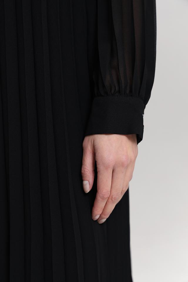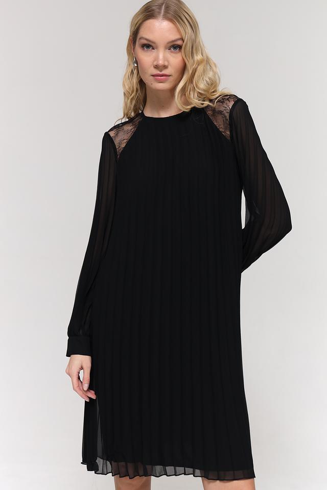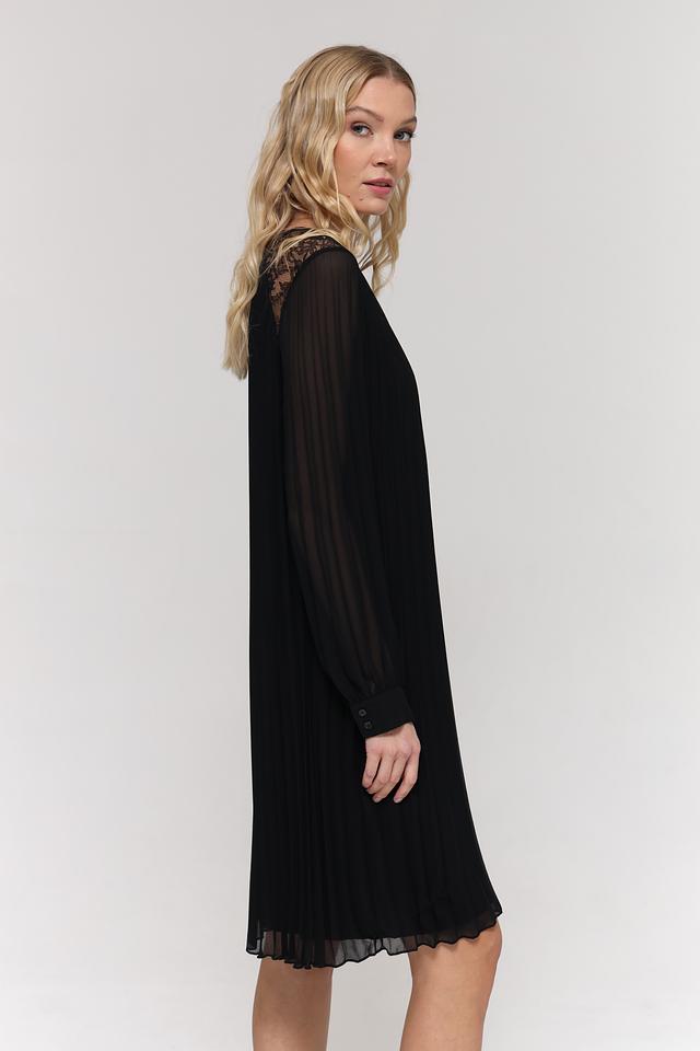 Чёрное платье от Gerry Weber с длинными рукавами и кружевной отделкой. Элегантный силуэт и плиссированная юбка создают женственный образ. Идеально подходит для создания как повседневных, так и вечерних луков. Состав: хлопок 100%