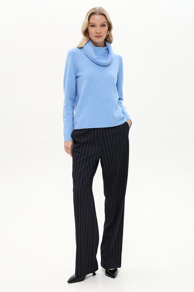 Дизайн пуловера лаконичный и элегантный. Высокий горл придаёт ему изысканность, а вязаная текстура добавляет объём и уют. Пуловер идеально сочетается с брюками, юбками и джинсами, позволяя создавать стильные и комфортные комплекты.