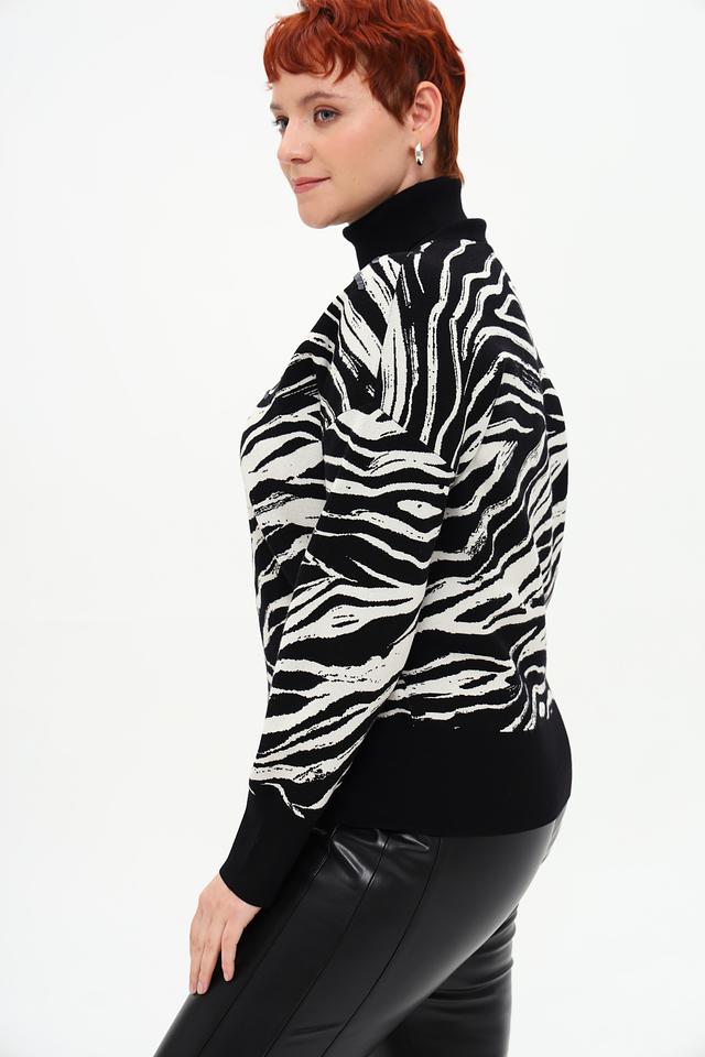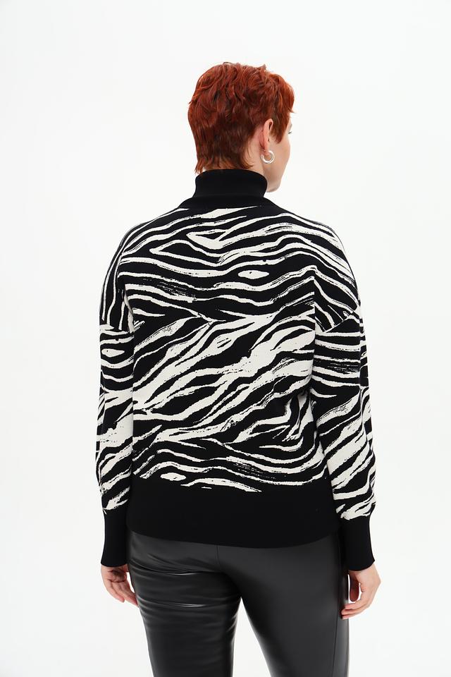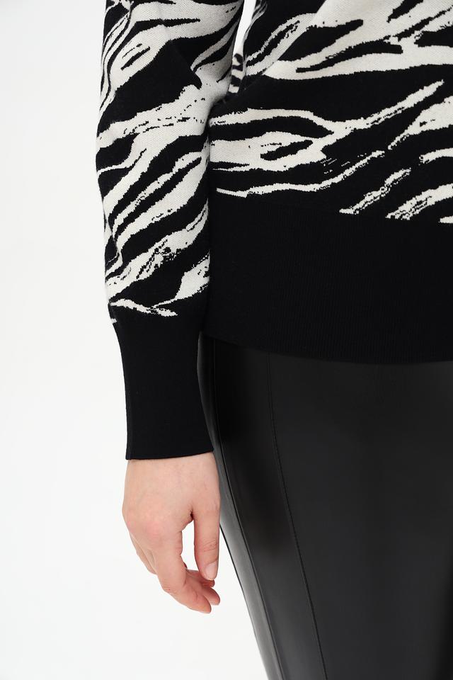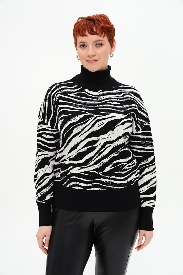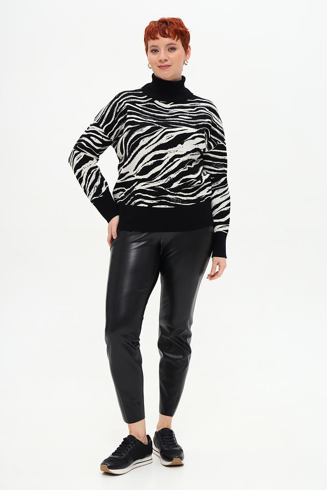 Эта водолазка от Gerry Weber – отличный выбор для создания модных и уютных образов. Модель выполнена в чёрном цвете с эффектным принтом, имитирующим шкуру зебры, что добавляет ей оригинальности и динамики.