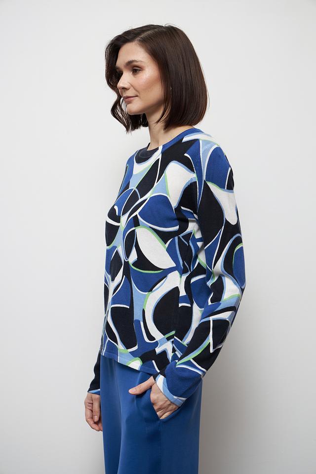 Женский пуловер Gerry Weber синего цвета с оригинальным абстрактным принтом. Модель выполнена из мягкого и приятного к телу сочетания хлопка и лиоцела, обеспечивающего комфорт в носке. Состав: хлопок 50%, лиоцел 50%