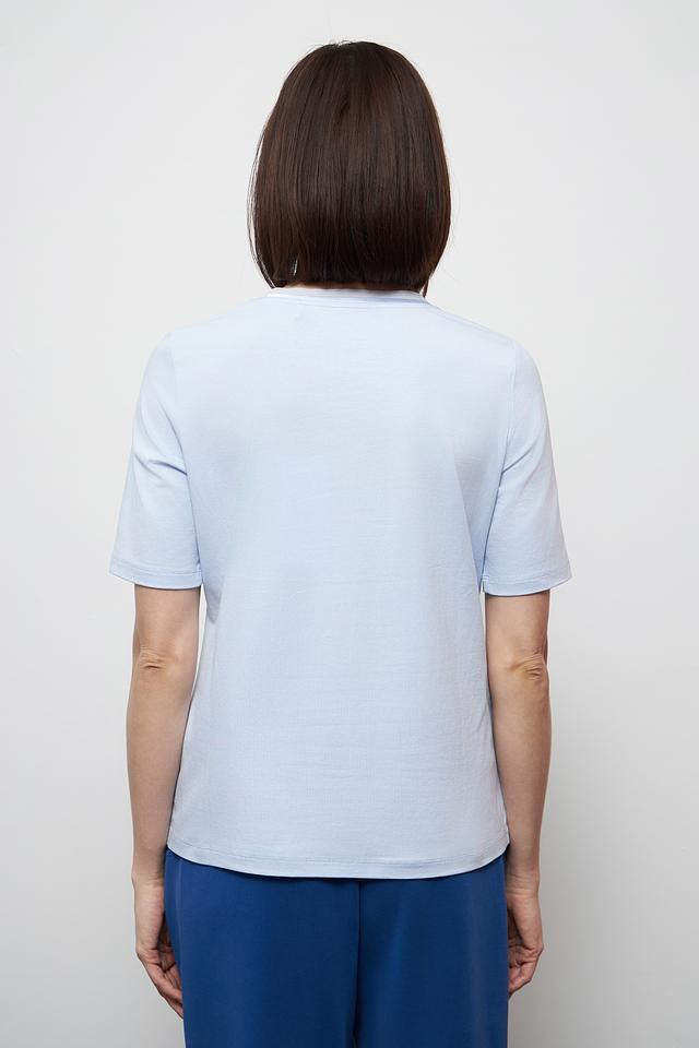 Женская футболка Gerry Weber EDITION голубого цвета – это базовая модель из мягкого трикотажа, идеально подходящая для создания повседневных образов. Футболка имеет прямой крой и короткий рукав, что обеспечивает комфорт в носке. Состав: хлопок 47%, модал 47%, эластан 6%