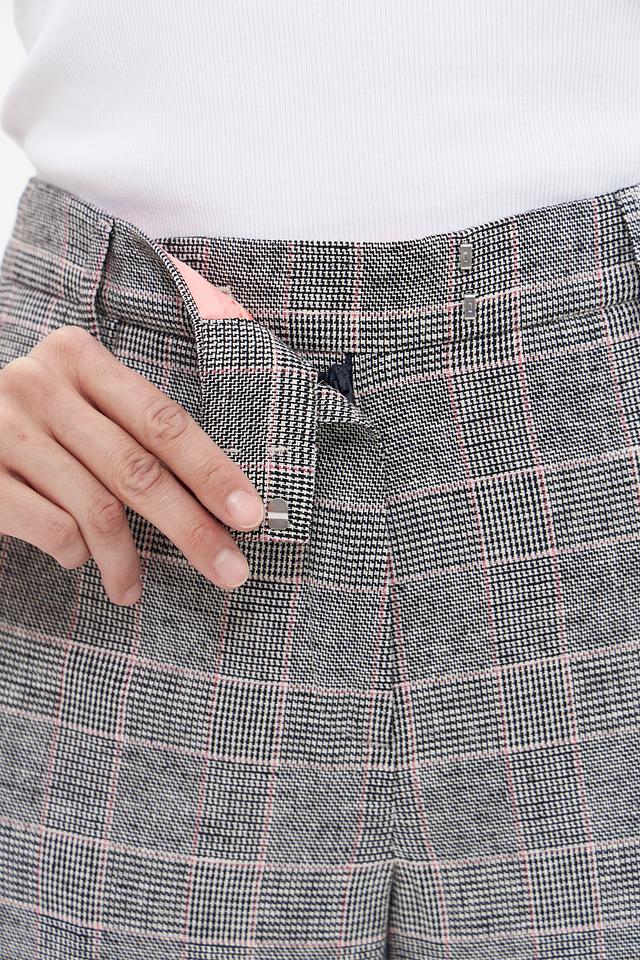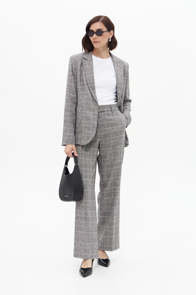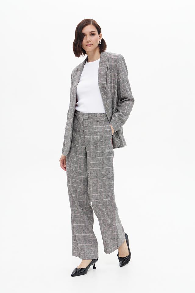 Женские брюки Gerry Weber серого цвета в классическую клетку – стильное и комфортное решение для создания элегантного образа. Модель выполнена из лёгкой ткани с добавлением льна и вискозы, обеспечивающей приятные ощущения при носке. Состав: лен 53%, вискоза 45%, эластан 2%