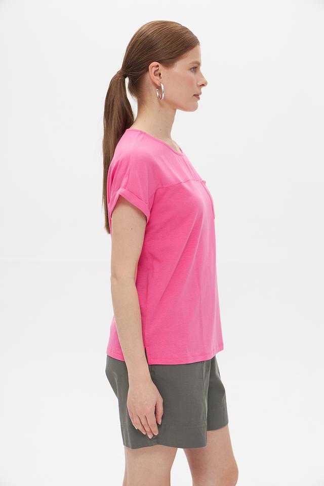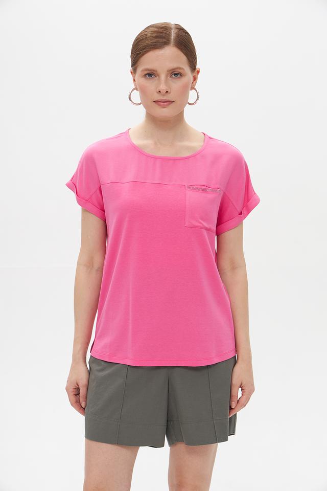 Розовая футболка Gerry Weber из хлопка и модала с коротким рукавом и накладным карманом. Модель отличается свободным кроем и удобной посадкой. Состав: хлопок, модал, эластан. Состав: хлопок 47%, модал 47%, эластан 6%