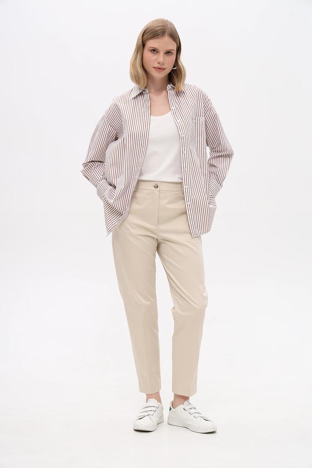 Классический крой и нейтральный бежевый цвет делают эти брюки универсальным элементом гардероба. Они прекрасно сочетаются с блузками, рубашками и топами, создавая как деловой, так и повседневный образ.