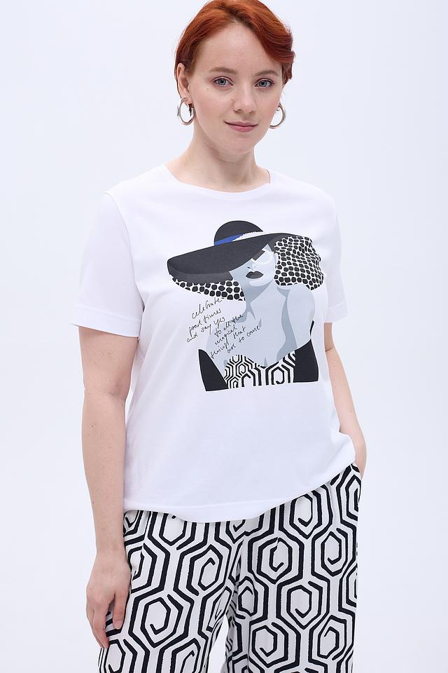 Белая футболка Gerry Weber с оригинальным графичным принтом в виде изображения женщины в шляпе. Изготовлена из 100% хлопка, обеспечивающего комфорт в носке. Идеально сочетается с юбками и брюками. Состав: хлопок 100%