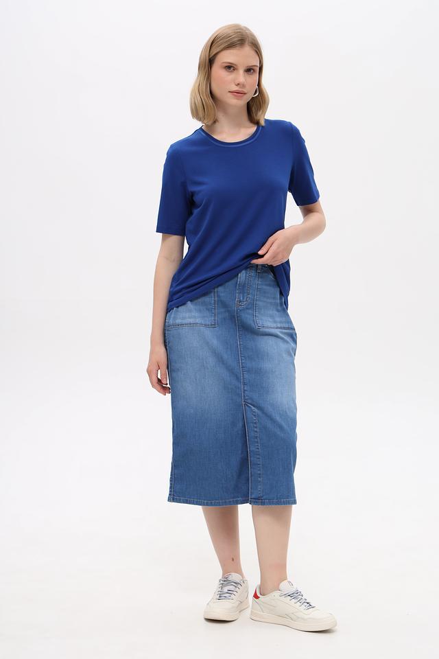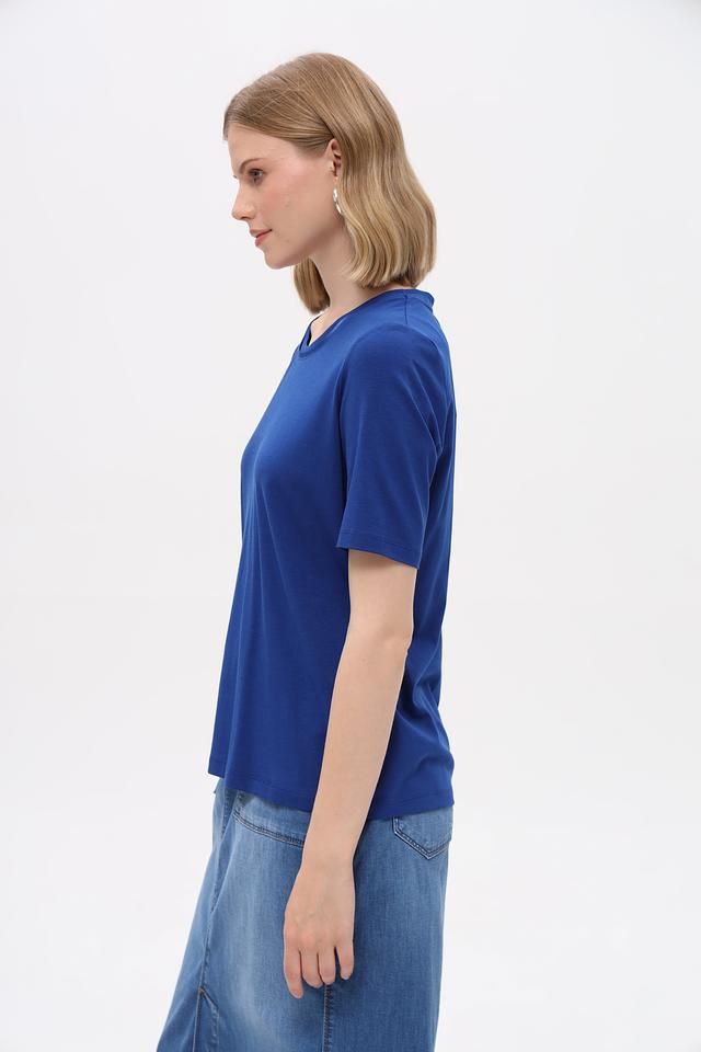 Синяя футболка Gerry Weber из мягкого хлопка с модалом. Базовая модель с короткими рукавами и круглым вырезом. Состав: 47% хлопок, 47% модал, 6% эластан. Состав: хлопок 47%, модал 47%, эластан 6%