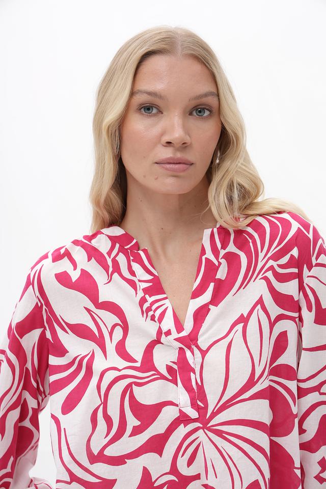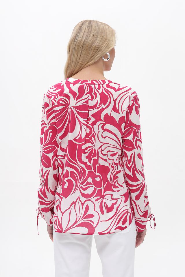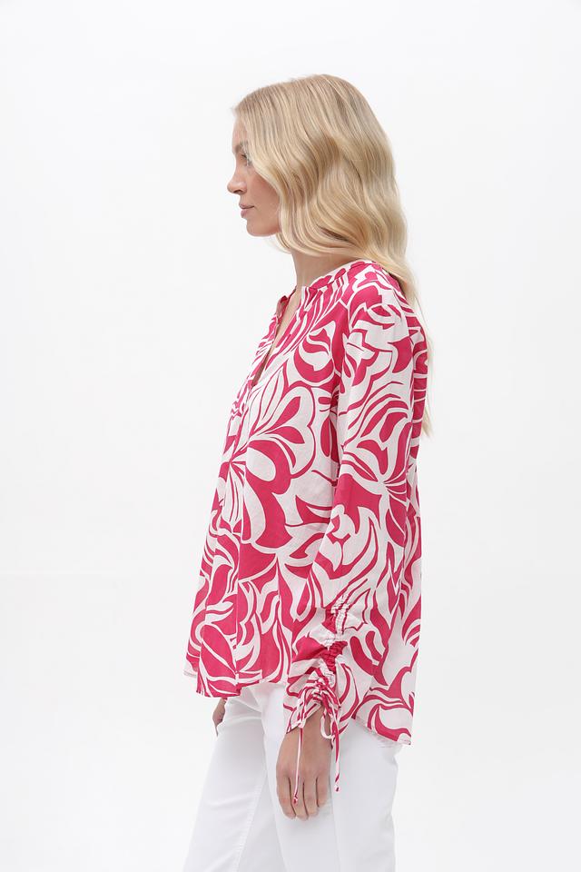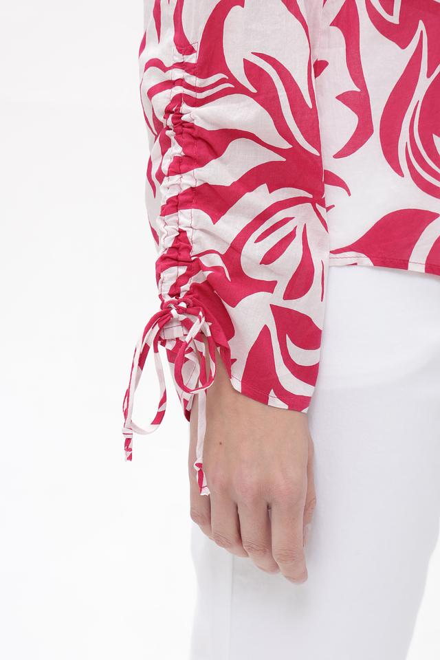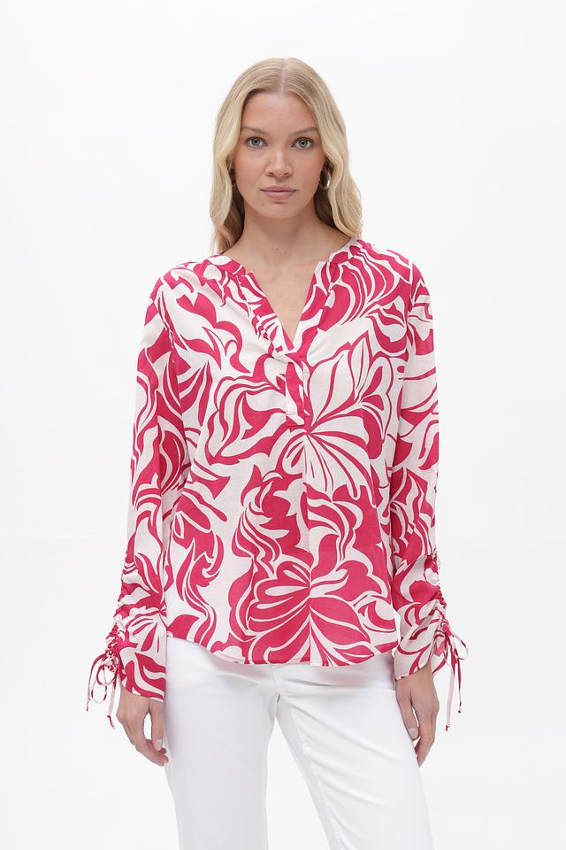 Розовая блузка Gerry Weber с ярким цветочным принтом выполнена из 100% хлопка. Модель с V-образным вырезом и длинными рукавами с завязками. Состав: хлопок 100%