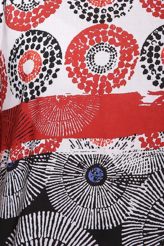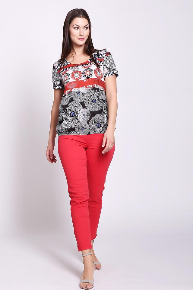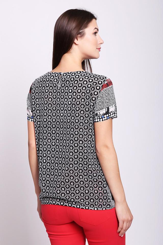 Блуза имеет свободный крой, который не сковывает движений. Округлый вырез горловины и короткие рукава делают ее идеальным выбором для теплой погоды. Привлекательный цветочный принт добавляет образу женственности и легкости.