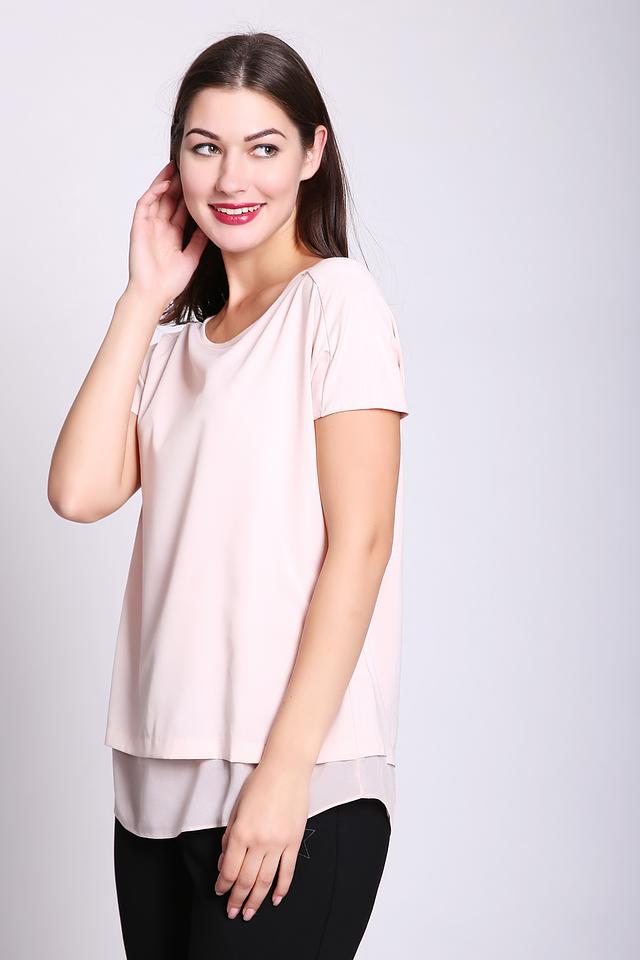 Блуза Gerry Weber нежно-розового цвета с многослойным дизайном и короткими рукавами. Модель выполнена из мягкой вискозы с добавлением эластана, что обеспечивает комфорт и удобство в носке. Идеально подойдет для создания легкого и женственного образа. Состав: вискоза 94%, эластан 6%