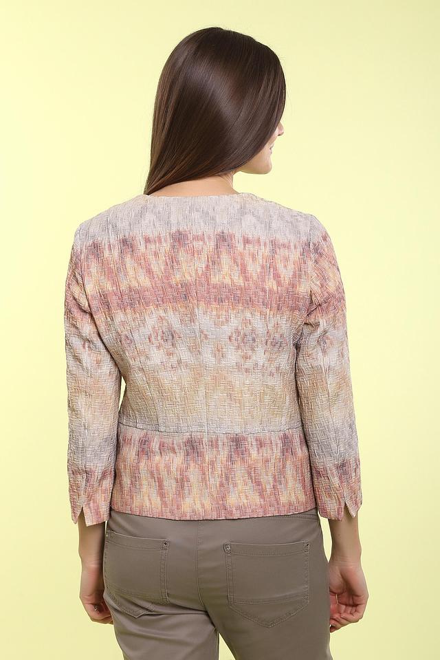 Этот жакет от Gerry Weber сочетает в себе комфорт и элегантность. Жакет выполнен в бежевой цветовой гамме с ярким, многоцветным принтом, который придает ему неповторимый вид.