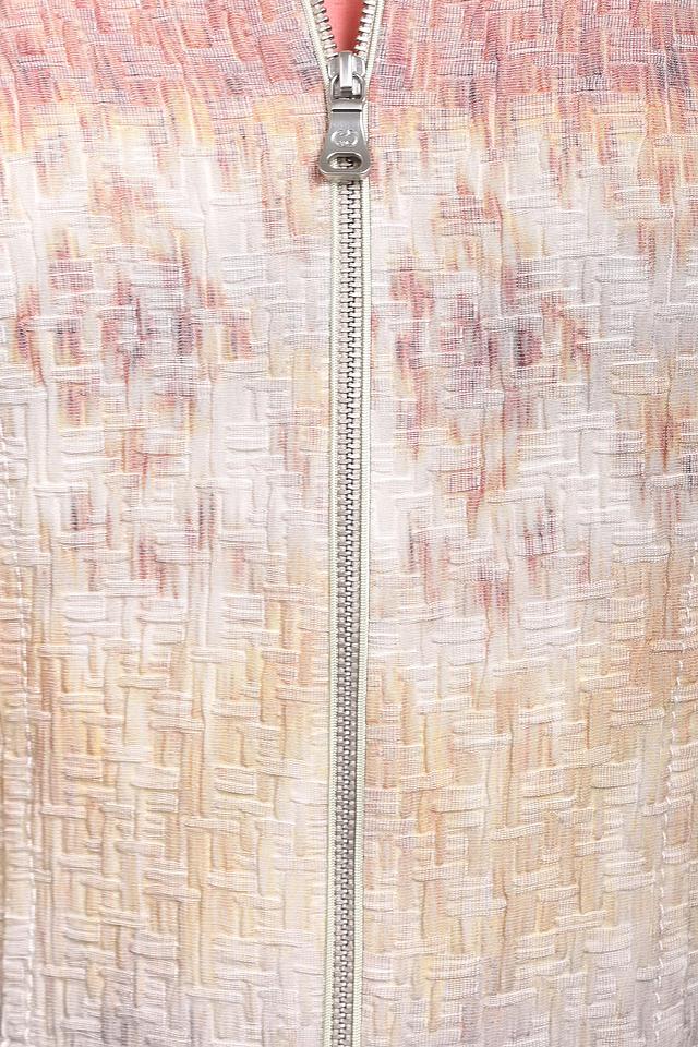 Модель имеет короткий рукав, что делает ее идеальным выбором для теплой погоды. Застежка на молнию обеспечивает удобство и практичность. Жакет имеет слегка приталенный силуэт, который подчеркивает фигуру.