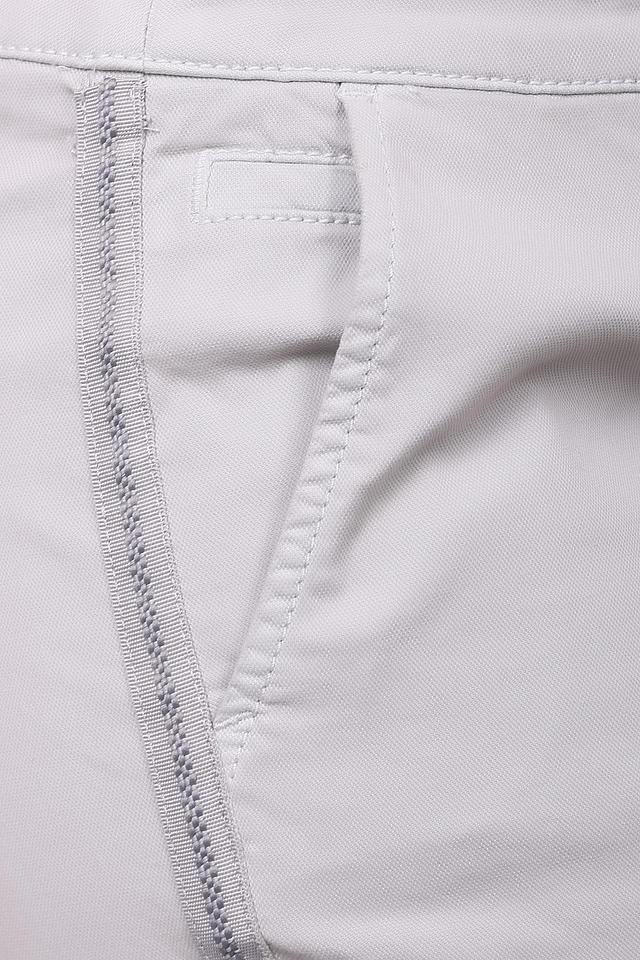 Особенностью модели является деликатная декоративная строчка вдоль боковых швов, придающая брюкам элегантный вид. Цвет брюк – светло-серый, что делает их универсальными и легко сочетаемыми с различными элементами одежды. Состав: хлопок 98%, эластан 2%.
