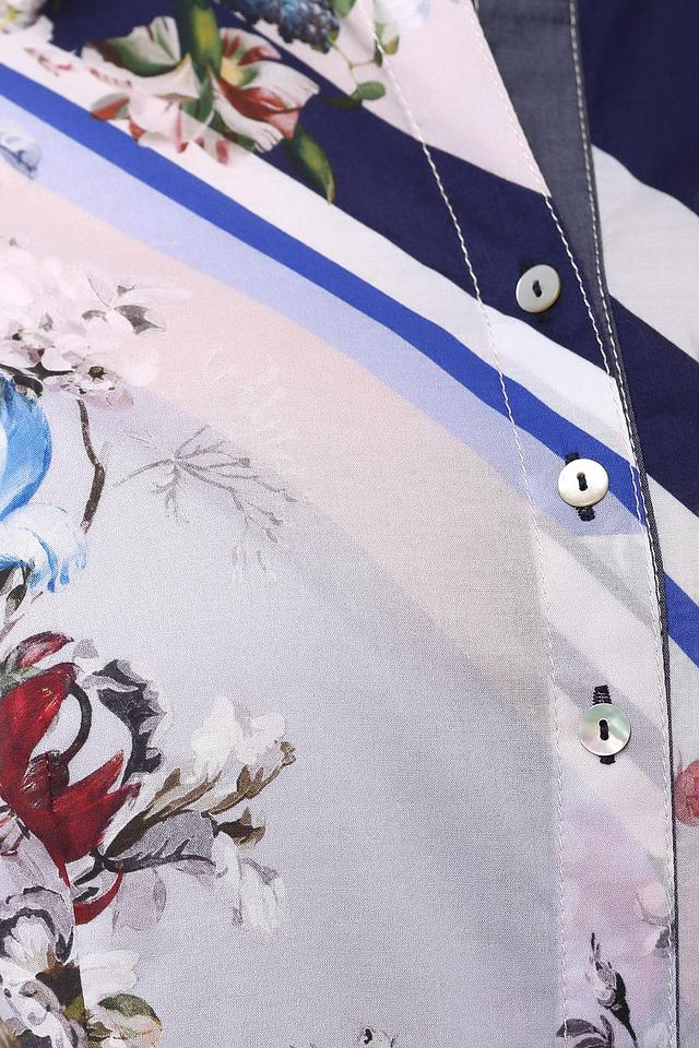 Женская блуза Gerry Weber светло-голубого цвета с ярким цветочным принтом и короткими рукавами. Модель выполнена из 100% хлопка, что обеспечивает комфорт и воздухопроницаемость. Состав: хлопок 100%