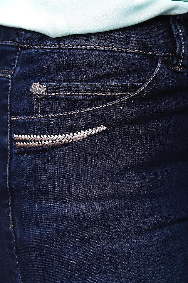 Джинсы выполнены из высококачественного хлопка с добавлением эластомера и эластана, что обеспечивает комфортную посадку и свободу движений. Декоративная строчка вдоль швов придает им особый шарм и стиль.