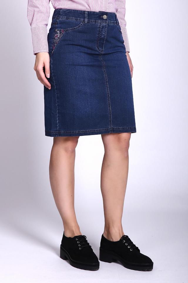 - Дизайн: Прямой крой юбки-карандаш длиной до колена является универсальным решением для любого типа фигуры. Декоративная вышивка на переднем кармане придает юбке уникальность и женственность.