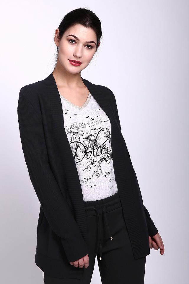 Чёрный жакет Gerry Weber из фактурной ткани. Модель без застежки, с длинными рукавами и воротником-стойкой. Идеально дополнит повседневный образ. Состав: вискоза 50%, хлопок 40%, шелк 10%
