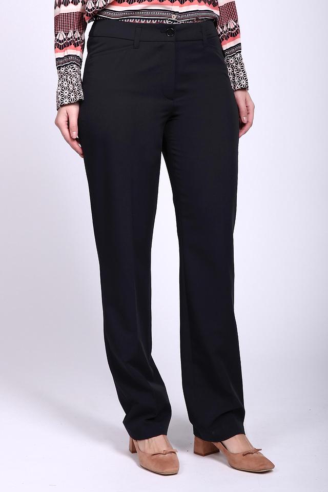 Брюки имеют прямой крой, который обеспечивает комфортную посадку и свободу движений. Застёжка на молнию и пуговицу, а также боковые карманы добавляют функциональности. Ткань, состоящая из полиэстера, вискозы и эластана, обеспечивает приятные тактильные ощущения и хорошую износостойкость.