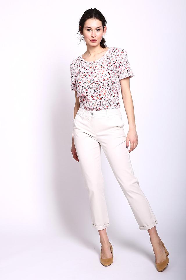 Брюки имеют классический бежевый цвет, который легко сочетается с различными элементами одежды. Укороченный крой и зауженный силуэт делают их актуальными и стильными.
