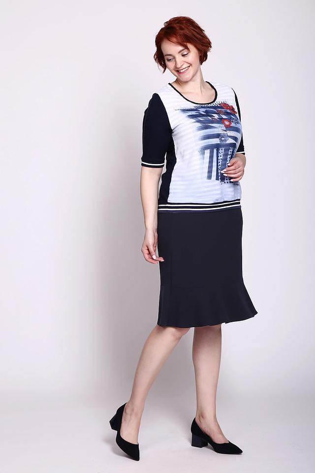 Темно-синяя юбка Gerry Weber классического кроя с изящной оборкой по низу. Модель выполнена из полиэстера, обеспечивающего комфорт и практичность в носке. Идеально подходит для создания элегантных и женственных образов. Состав: полиэстер 100%, Состав_подкладка полиэстер 100%