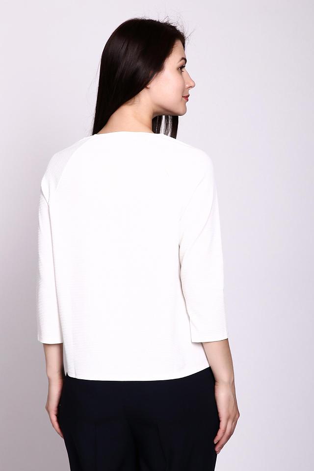 - Комфортный крой: Свободный, прямой силуэт и рукава длиной 3/4 обеспечивают максимальный комфорт и не сковывают движений. Блузка прекрасно сидит на фигуре, создавая аккуратный и завершенный образ.