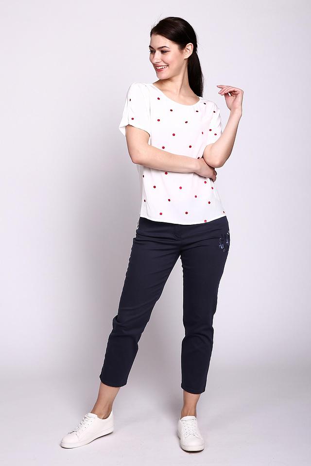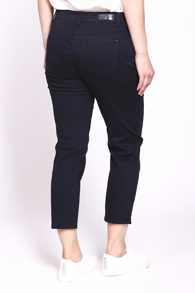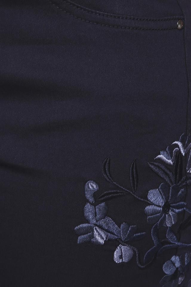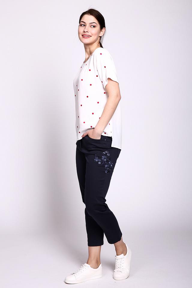 Классический темно-синий цвет делает эти капри универсальными и легко сочетаемыми с различными элементами одежды. Оригинальный акцент – цветочная вышивка на кармане, которая придает образу женственность и изысканность.