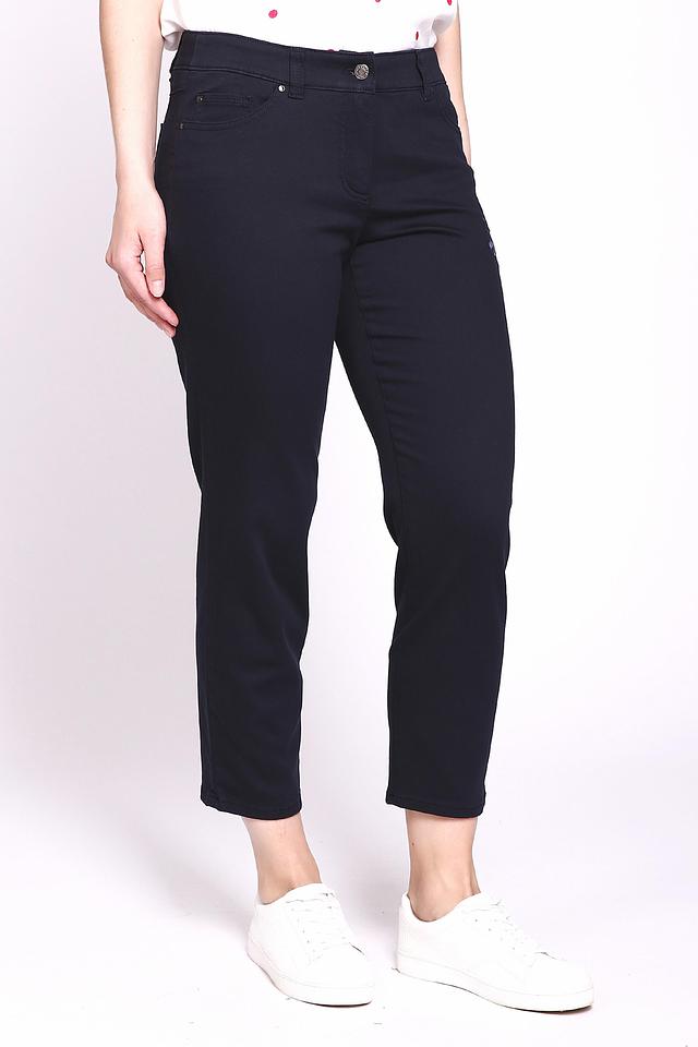 Женские капри Gerry Weber темно-синего цвета, украшены цветочной вышивкой на кармане. Модель выполнена из мягкого хлопка с добавлением полиэстера и эластана для комфорта и хорошей посадки. Состав: хлопок 85%, полиэстер 11%, эластан 4%