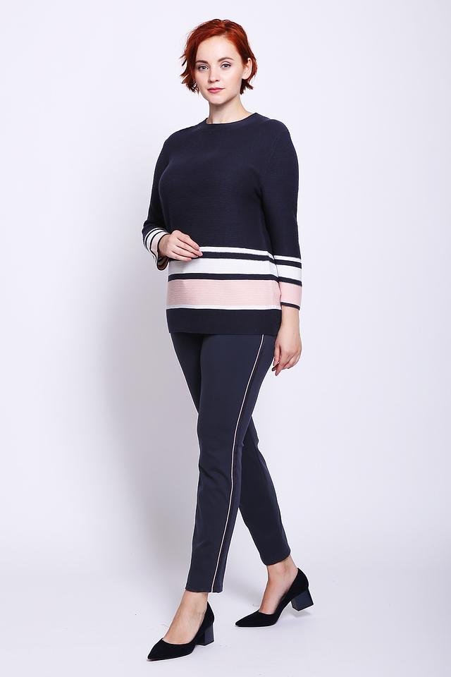 Стильные брюки Gerry Weber тёмно-синего цвета с контрастной белой полосой по бокам. Классический крой и эластичный материал обеспечивают комфортную посадку и свободу движений. Состав: полиамид 90%, эластан 10%
