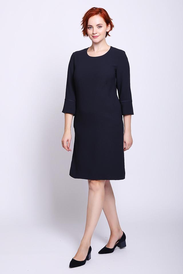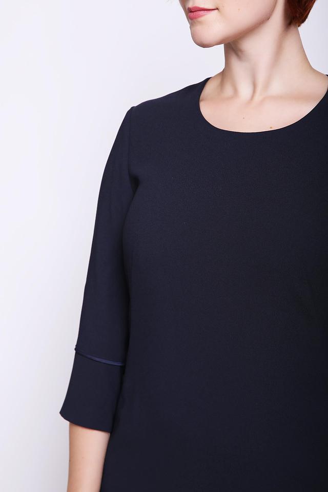 Модель отличается круглым вырезом горловины и рукавами длиной 3/4, которые дополнены аккуратной отделкой в тон ткани. Платье выполнено из высококачественного полиэстера, что обеспечивает комфорт в носке и лёгкость ухода.