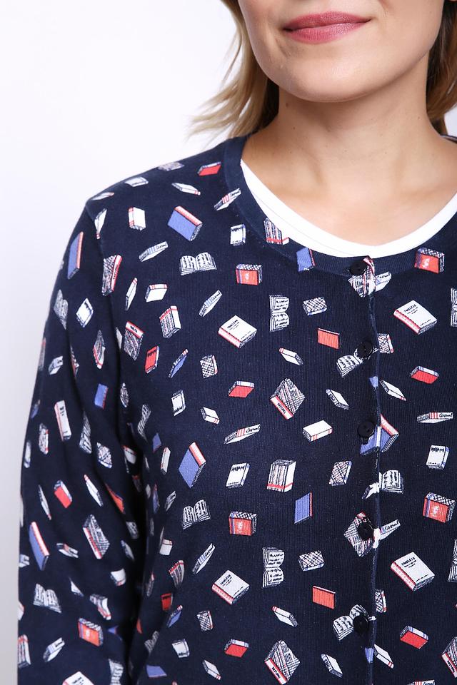 Жакет Gerry Weber синего цвета с оригинальным принтом в виде книг станет стильным дополнением к вашему гардеробу. Модель с длинными рукавами и застежкой на пуговицы идеально подходит для создания повседневных образов. Состав: хлопок 75%, полиамид 22%, эластан 3%