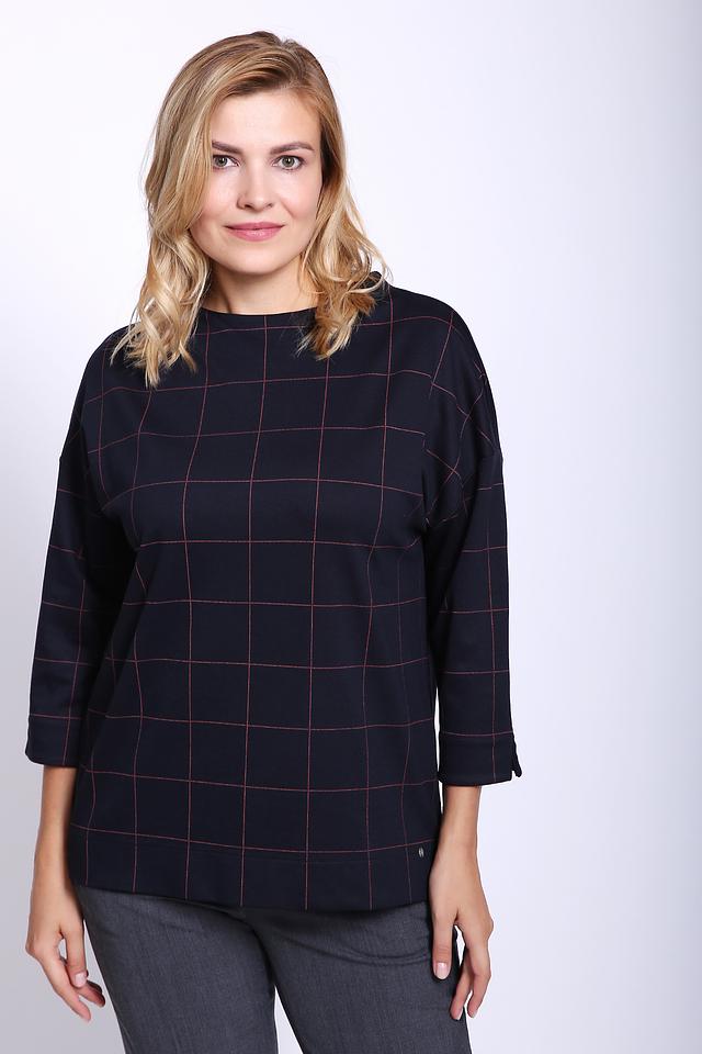 Женский пуловер Gerry Weber черного цвета с клетчатым принтом – стильное и комфортное решение для повседневного гардероба. Модель с рукавом 3/4 и округлым вырезом горловины выполнена из мягкого трикотажа. Состав: вискоза 60%, полиэстер 35%, эластан 5%