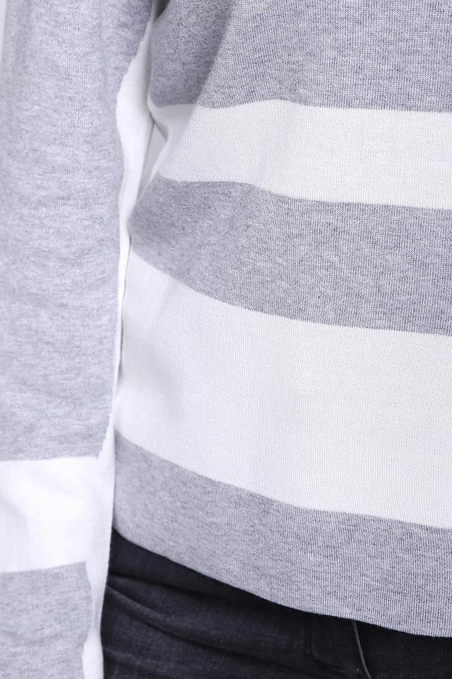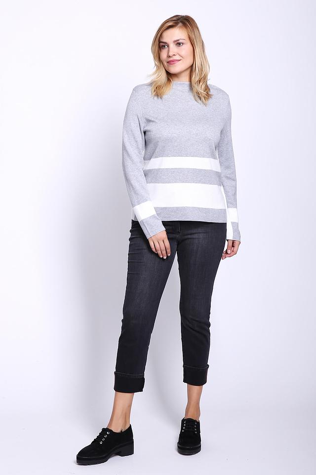 Этот пуловер от Gerry Weber станет отличным дополнением к вашему образу. Модель выполнена в сером цвете с широкими белыми полосами, создающими эффектный контраст.