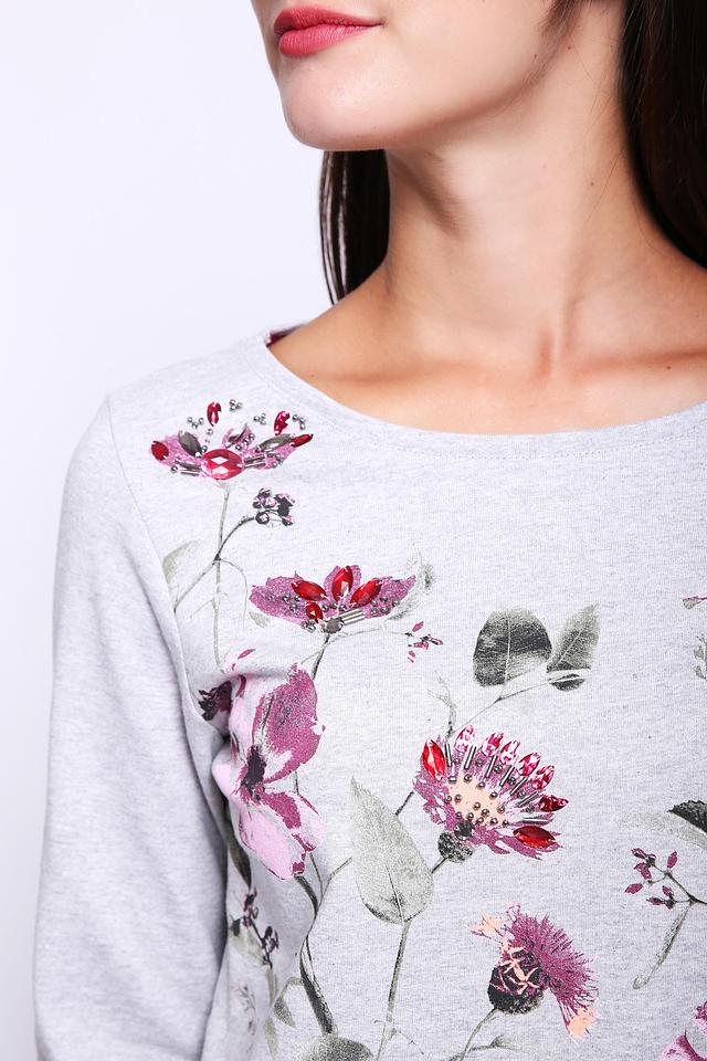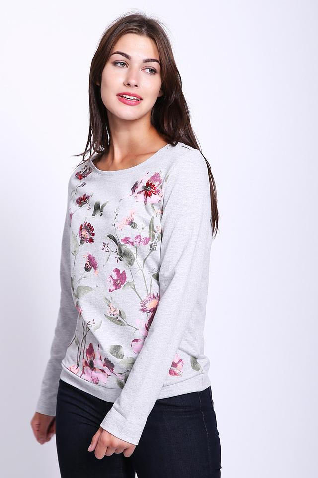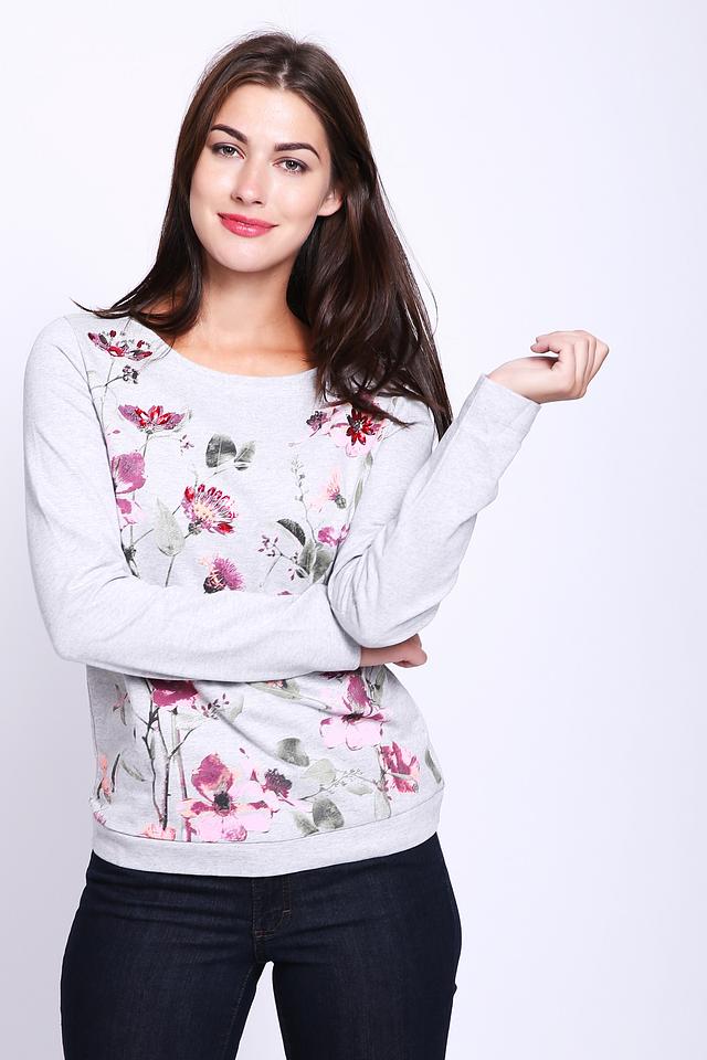 Этот стильный пуловер от Gerry Weber выполнен в сером цвете и украшен ярким цветочным принтом. Модель имеет круглый вырез горловины и длинные рукава, что делает ее универсальной для различных образов.