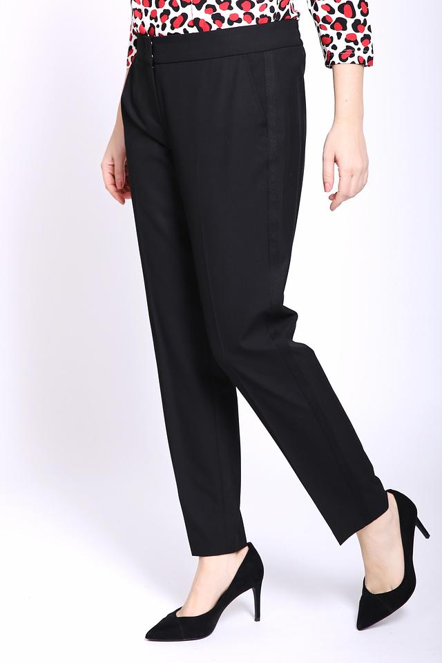 Модель дополнена боковыми карманами и задними карманами с декоративной отделкой. Элегантный и лаконичный дизайн делает эти брюки отличным выбором для женщин, ценящих стиль и качество.