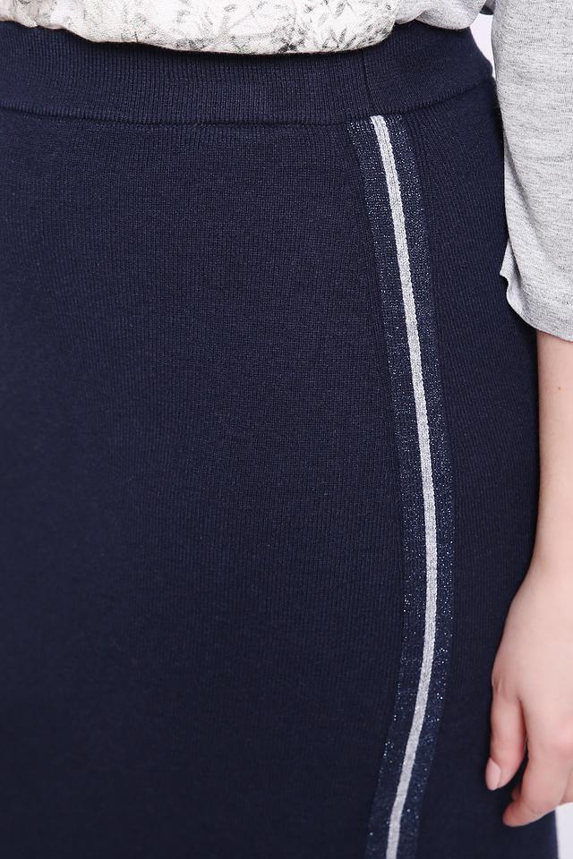 Юбка синего цвета фирмы Gerry Weber. Модель выполнена прямымфасоном. Изделие дополнено пришивным поясом с эластичной лентой. По боковому шву пристрочена тесьма белого цвета. Состав ткани состоит из 40% вискозы, 39% полиамида, 29% шерсти, 1% модифиц.полиэстера. Хорошая посадка п фигуре. Гармонировать можно с различными блузами, пуловерами.