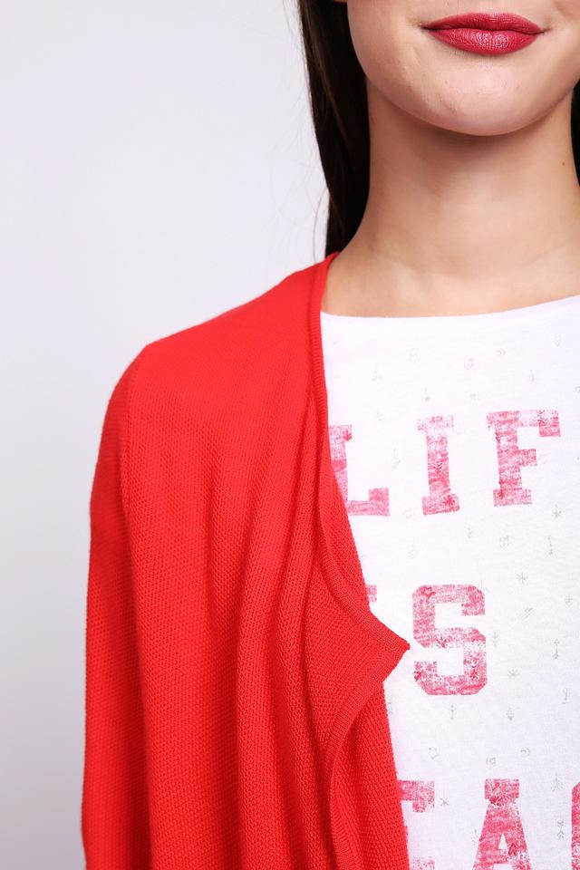 Этот жакет от Gerry Weber станет прекрасным дополнением к вашему гардеробу. Модель выполнена в насыщенном красном цвете и имеет удобный кардиган силуэт, который легко сочетается с различными стилями одежды.