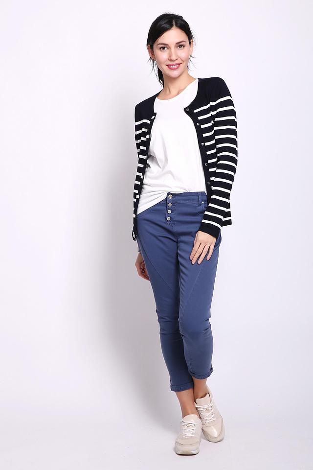 Жакет Gerry Weber темно-синего цвета с белыми полосами – стильное и удобное решение для создания повседневного образа. Модель застегивается на пуговицы и имеет классический крой. Изготовлен из вискозы и полиэстера. Состав: вискоза 77%, полиэстер 23%