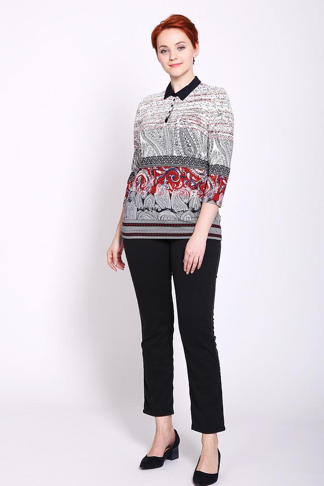 Женское поло Gerry Weber белого цвета с ярким цветочным принтом и рукавом 3/4. Изготовлено из мягкой вискозы с добавлением эластана для комфорта и хорошей посадки. Состав: вискоза 95%, эластан 5%