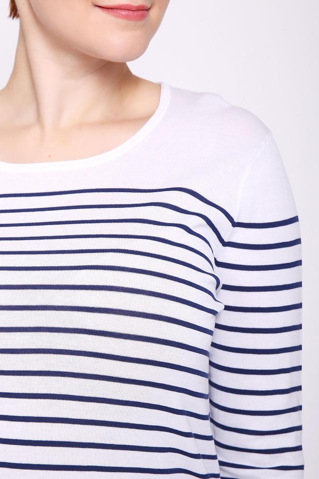 Женский пуловер Gerry Weber синего и белого цвета в классическую полоску. Изготовлен из 100% хлопка, обеспечивающего комфорт и воздухопроницаемость. Стильный и универсальный выбор для повседневного гардероба. Состав: хлопок 100%